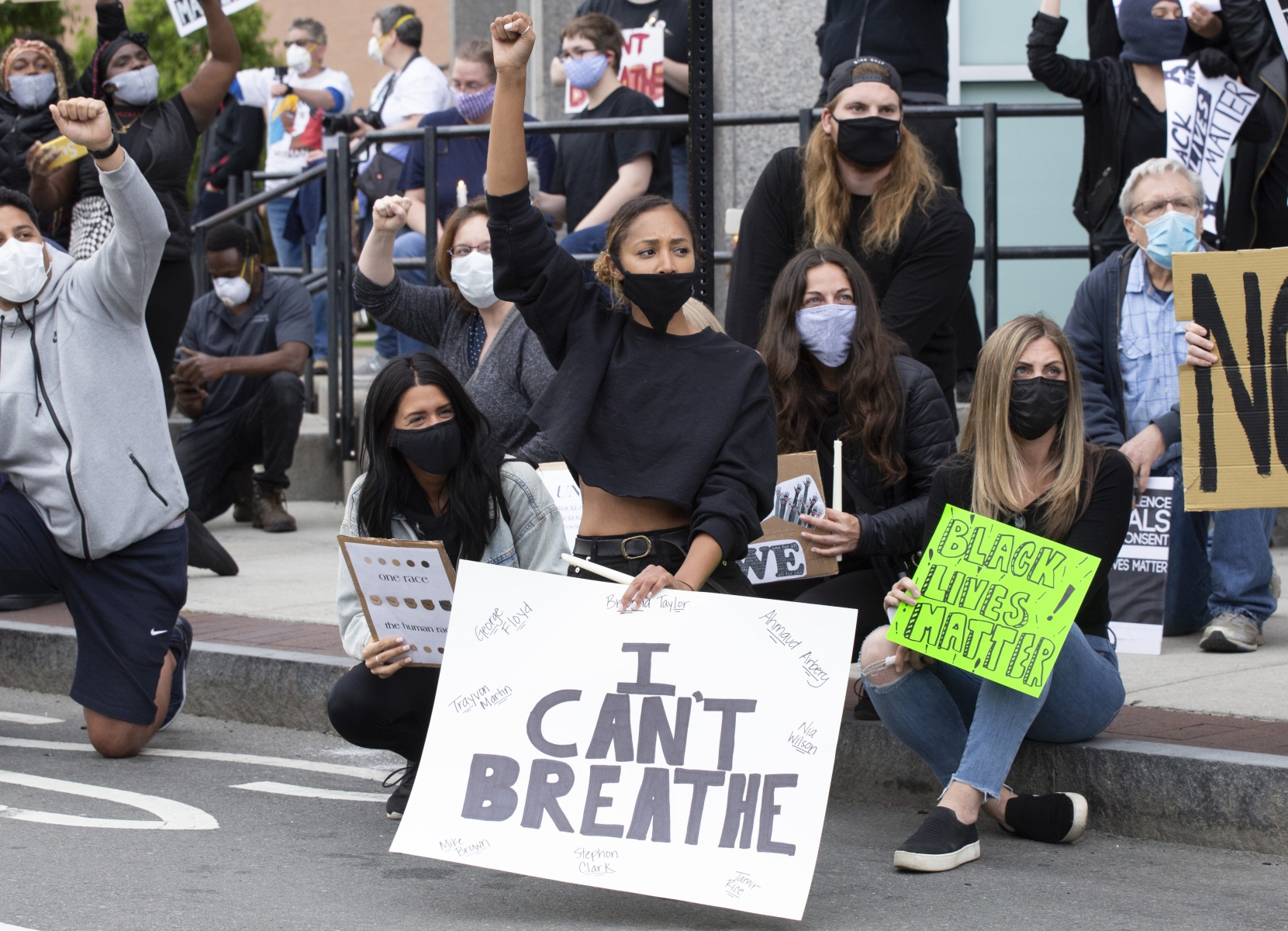 Protesters at a Quincy demonstration and vigil to protest the killing of black Americans at the hands of police on June 2, 2020. (Joe Difazio/The Patriot Ledger)